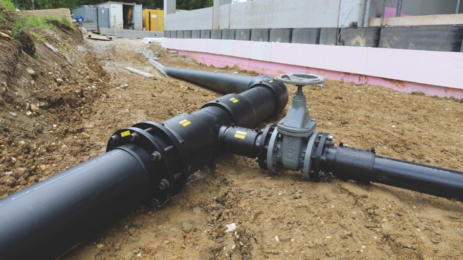 Die Wasserversorgung eines Brandschutzsystems ist die kritischste Komponente des Systems. Der Transport des Wassers von der Quelle bis zur Schnittstelle des Gebäudes ist die Aufgabe der unterirdischen Brandschutzleitungen. Dieses Rohrsystem muss extrem zuverlässig sein, um inneren und äußeren Belastungen, vor allem Druckschlägen über lange Zeiträume standzuhalten. РЕ 100-RC-Rohre und -Formteile können homogen mittels Heizelementstumpfschweißen oder Elektroschweißen miteinander verschweißt werden. Die Schweißverbindungen sind so fest wie das Rohr selbst und bilden ein durchgehend dichtes System. Auf der anderen Seite korrodieren oder verkrusten die 100-RC-Rohre nicht. Dies ist ein wichtiger Punkt, da im Falle eines Brandes die Notventile sofort geöffnet werden und wenn die Rohre korrodiert oder verkrustet sind, können Partikel mitgespült werden und die Sprinkler im Gebäude verstopfen.