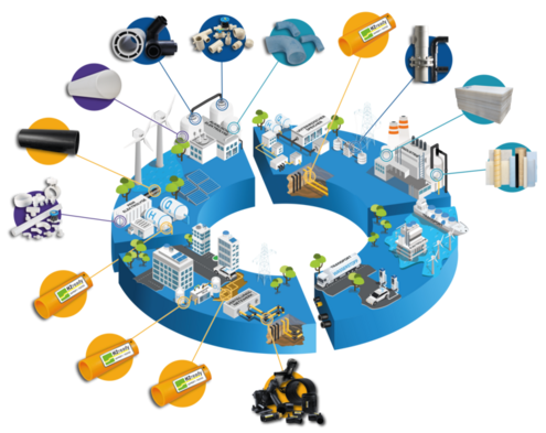 Water transport and storage: Depending on the region and the application, the enormous demand for water is met by groundwater supplies, lake water, chlorinated water or seawater. The AGRULINE and XXL pipe systems offer application-specific complete solutions for water transport from the source to the electrolysis unit.