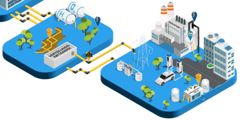 Hydrogen transportation: The produced hydrogen is stored under high pressure either in tanks or underground in caverns. The hydrogen is transported to the various end users (industry, mobility, heating, fuel cells...) via the existing or newly laid gas pipeline network. From the pressure reduction station, the "green gas" can be distributed either as a hydrogen-natural gas mixture or 100% at pressures up to ten bar through the AGRULINE pipe system made of PE 100-RC.